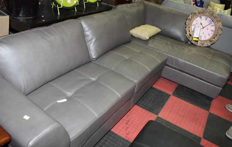 NEW GREY LEATHERETTE CHAISE LOUNGE SECTIONAL