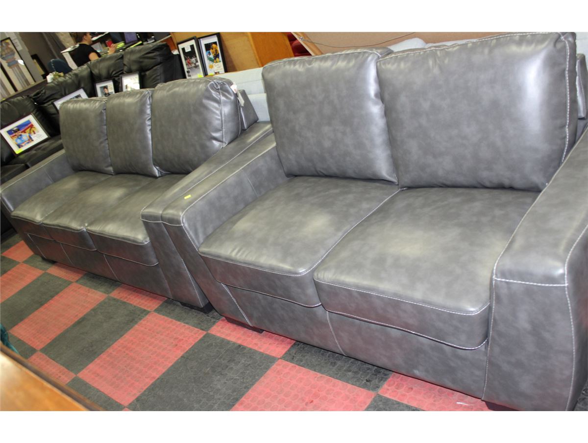 NEW GREY LEATHERETTE SOFA W/ LOVE SEAT