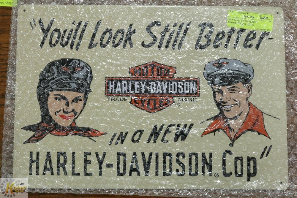 SIGN "YOU'LL LOOK STILL BETTER IN A NEW HARLEY-DAVIDSON CAP" (10.5"H X 15"W) - COLLECTIBLES