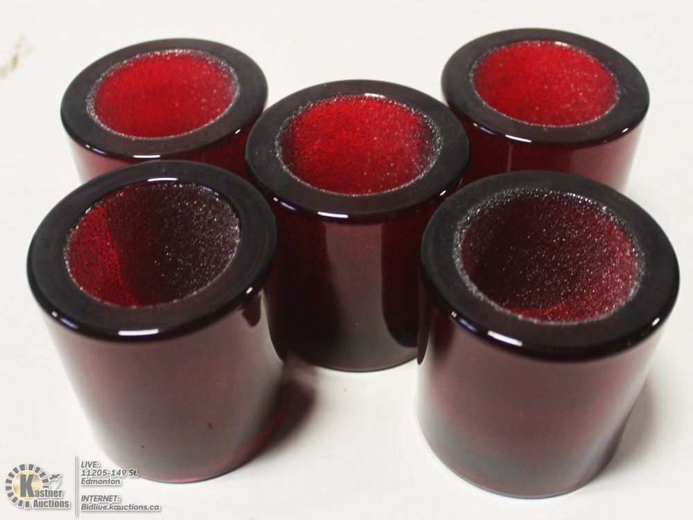 NEW HOLLOWICK RED CANDLE HOLDERS (LOT OF 5)
