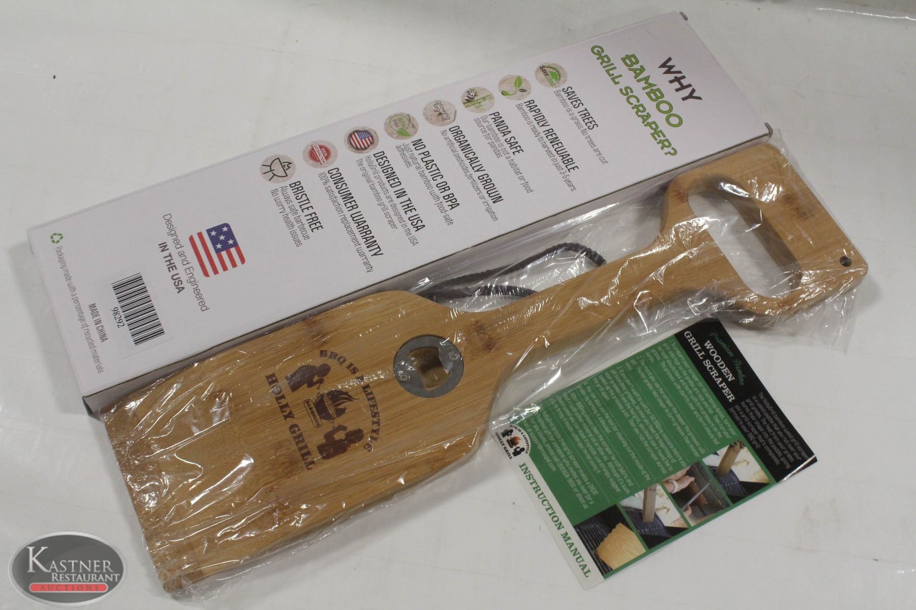 W/ EMBEDDED BOTTLE CAP OPENER, HANDLE AND LOOPHOLE FOR HANGING. CERTIFIED 100% ORGANIC PRODUCT. DESIGNED & ENGINEERED(NOT MANUFACTURED) IN THE USA, CONSCIOUS CONSUMER CHOICE: SAVES TREES (BAMBOO IS GRASS), PANDA-SAFE (THIS BAMBOO NOT A HABITAT OR FOOD SOURCE FOR PANDAS), PREMIUM BAMBOO ORGANICALLY GROWN, NO ARTIFICAL PESTICIDES, FERTILIZERS, IRRIGATION, NO PLASTIC OR BPA, BRISTLE FREE (SANITARY). NEW IN-BOX, W/ INSTRUCTIONS.
