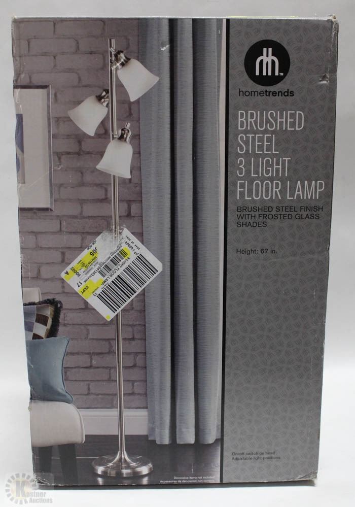 NEW HOMETRENDS BRUSHED STEEL 3-LIGHT FLOOR LAMP