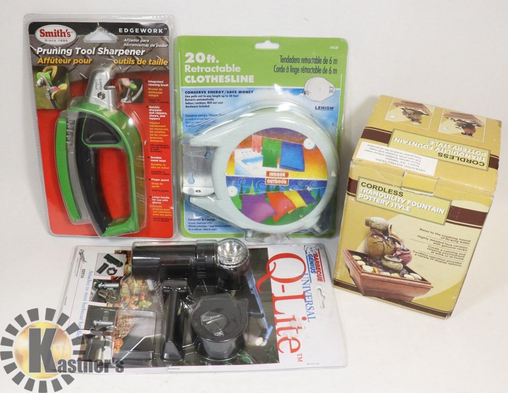 CLOTHESLINE, PRUNING TOOL SHARPER, BQ, Q-LITE, CORDLESS TABLE TOP WATER FOUNTAIN. HOME