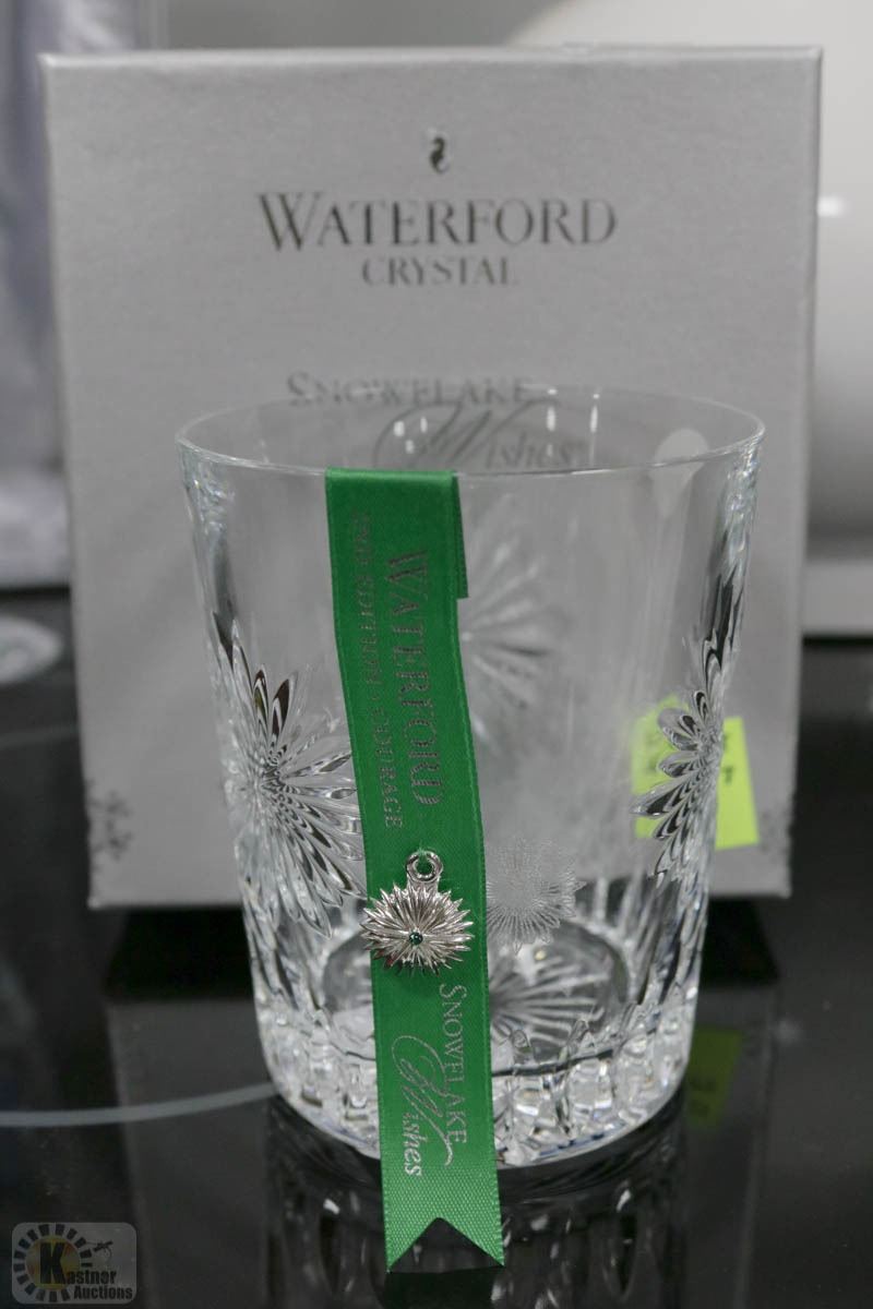 "COURAGE" - 2ND EDITION IN THE SNOWFLAKE WISHES COLLECTION. COMES WITH ITS ORIGINAL WATERFORD SATIN LINED BOX, STICKER LABEL, PAPERWORK & LISMORE TOASTING ORNAMENT. CRYSTAL LIQUOR GLASS IS CUT WITH A SNOWFLAKE PATTERN. (4.5"H - 12OZ)