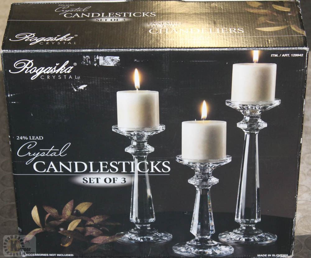 LARGE-12" MEDIUM-10" SMALL-8". HANDMADE BY ROGASKA CRYSTAL COMPANY. MADE IN SLOVENIA.