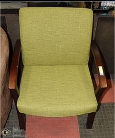 WOOD FRAME ARM CHAIR - FIRM CUSHION SEAT AND BACK, WASHABLE, GREEN FABRIC (26.5"L X 25"W X 35"H) - FURNITURE
