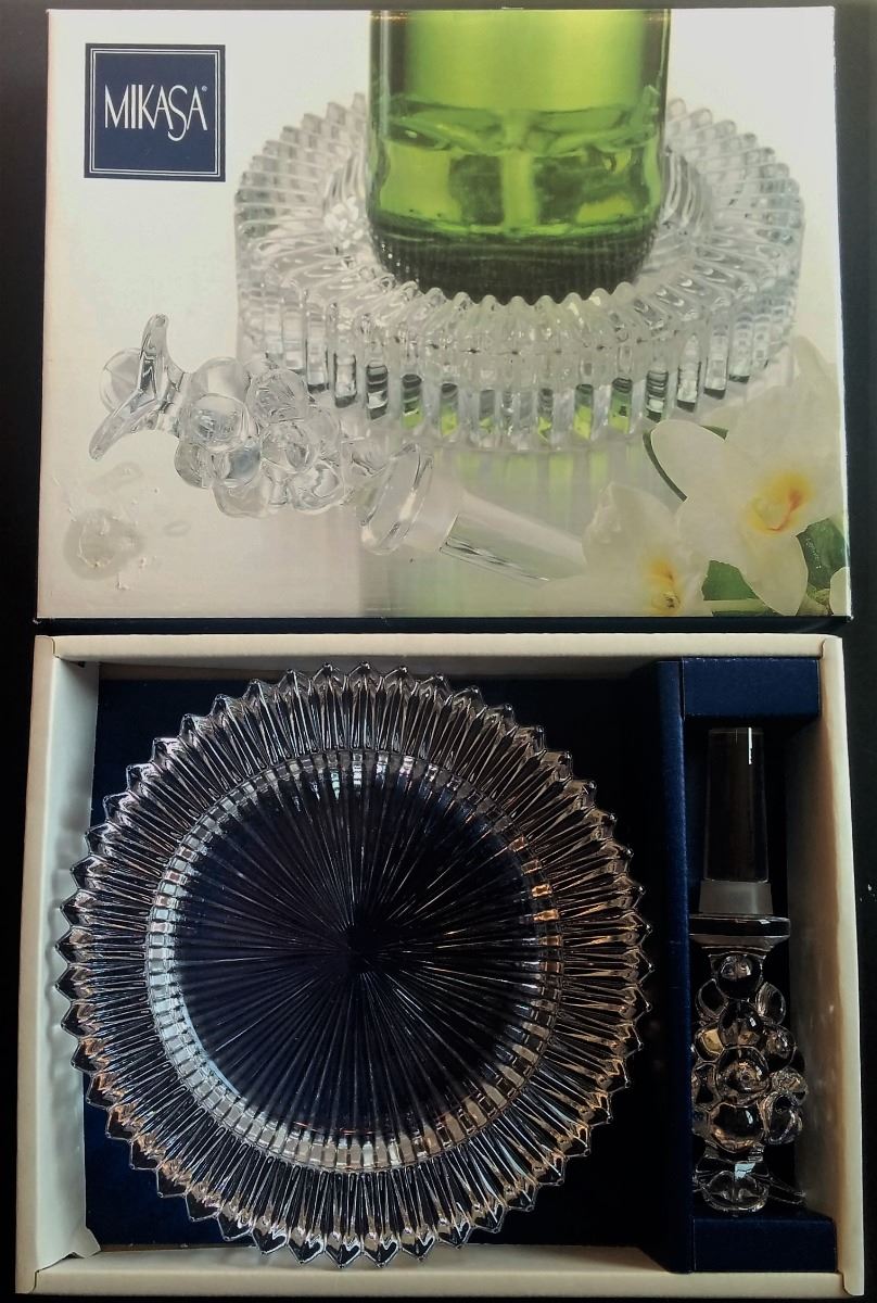 INCLUDES GLASS TABLE SAVER COASTER & FANCY WINE BOTTLE STOPPER