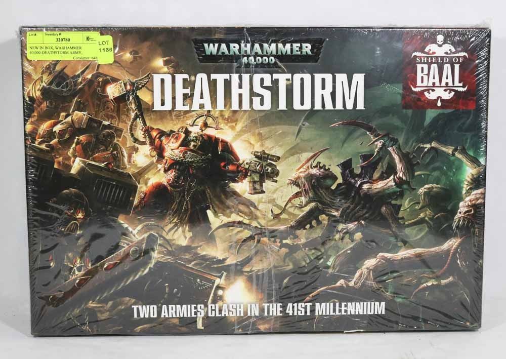 HAS DEATHSTORM CAMPAIGN BOOK,RULE BOOK, BLOOD ANGELS, SPACE MARINES AND TYRANID FIGURES INCLUDED. RETAILS FOR $140 . COLLECTIBLES