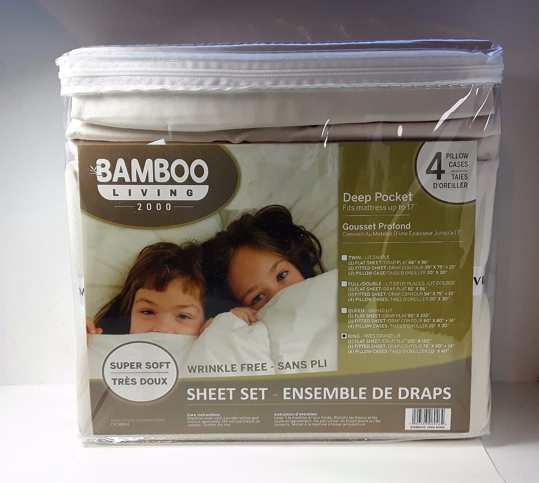 CREAM COLORED BAMBOO, EXTRA DEEP POCKETS & 4 PILLOW CASES