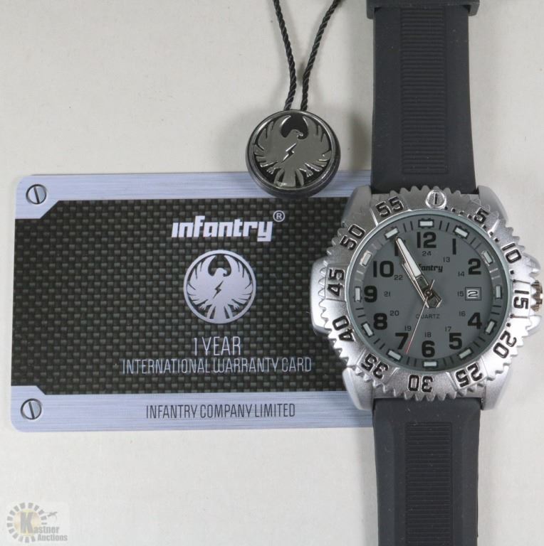 ARMY STYLE W/ RUBBER BAND ON CHOICE. COMES WITH 1 YR. INTERNATIONAL WARRANTY CARD
