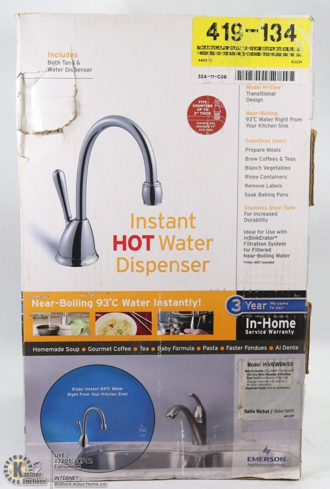 DISPENSER SATIN NICKEL FINISH TAP, 2.5 LITRE STAINLESS STEEL TANK, EASY ADJUST TEMPERATURE CONTROL (UP TO NEAR BOILING 93 DEG. C. WATER - RETAILS $400 - APPLIANCE