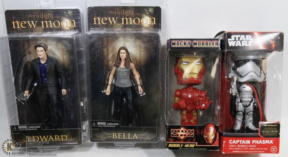 WOBBLER BOBBLEHEAD & W/2 TWILIGHT MOON BELLA SWAN & EDWARD, STAR WARS CAPTAIN PHASMA FIGURES. COLLECTIBLES