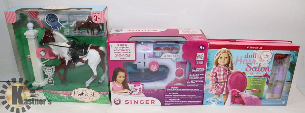 HAIR SALON, SINGER EZ-STITCH SEWING MACHINE W/MEGATOYS L.A THE HORSE COLLECTION PLAYSET. KIDS