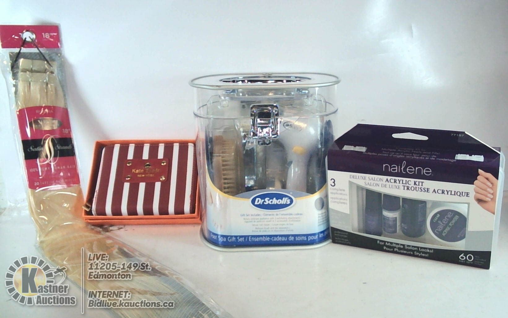 KIT, NAILENE DELUXE SALON ACRYLIC NAIL KIT, KATE SPADE NEW YORK WALLET, RIVIERA 18" HUMAN BLONDE HAIR EXTENSIONS