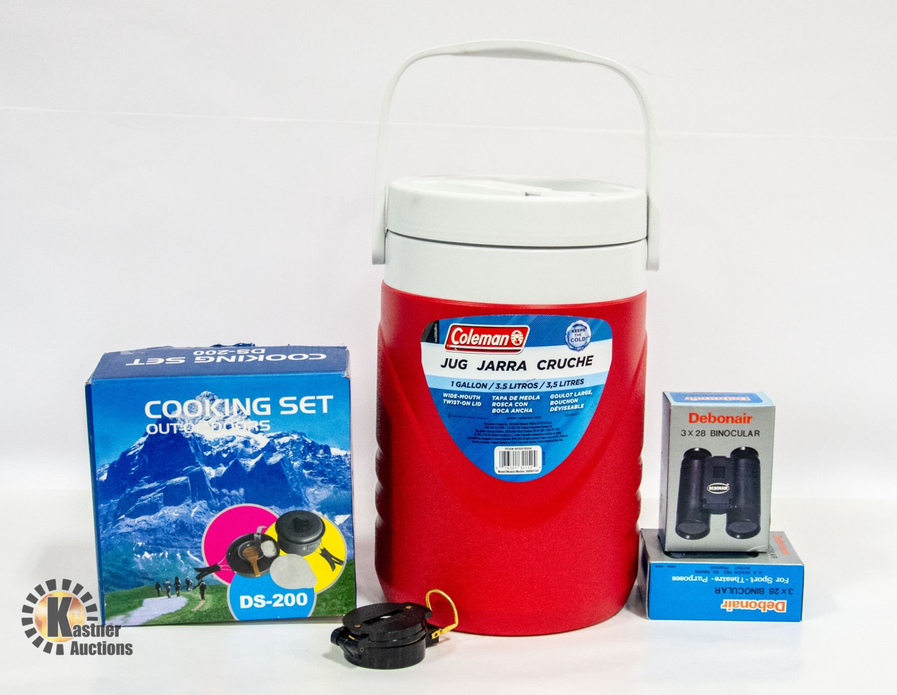 OUTDOOR COOKING SET 1-2 PERSON W/1 GALLON COLEMAN JUG & DEBONAR (2) PAIR 3 X 28 MINI BINOCULARS, ENGINEER COMPASS DIRECTIONAL **ALL ITEMS MUST BE REMOVED BY 5PM SATURDAY, JULY 22ND 2023. ALL REMAINING ITEMS WILL BE SUBJECT TO A $6.00 PER DAY STORAGE CHARGE. ANY ITEMS REMAINING AFTER MONDAY, AUGUST 7TH, 2023 WILL BE CONSIDERED FORFEITED. NO REFUNDS WILL BE ISSUED FOR FORFEITED ITEMS. TO SCHEDULE A PICK UP APPOINTMENT CLICK HERE