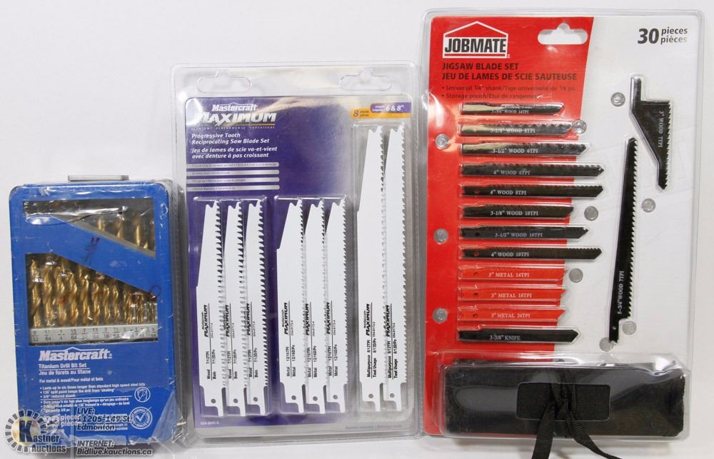 UNIVERSAL 1/4 SHANK 30 PC W/MASTERCRAFT MAXIMUM PROGRESSIVE TOOTH RECIPROCATING SAW BLADE SET & MASTERCRAFT TITANIUM DRILL BIT SET 29 PCS
