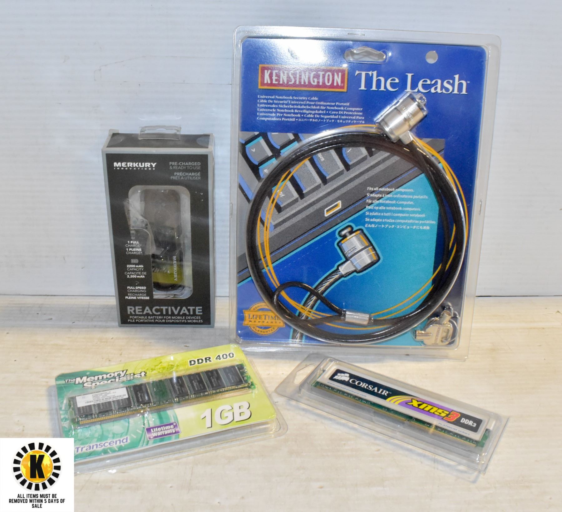 UNIVERSAL NOTEBOOK LOCK, MERKURY INNOVATIONS PORTABLE BATTERY 2,200 MAH W/THE MEMORY SPECIALIST #DDR400 & CORSAIRXMS3 DDR3 PLATINUM SERIES