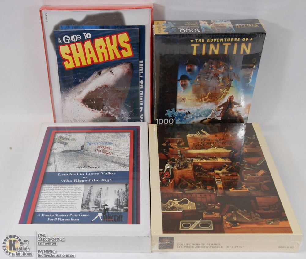 W/GUIDE TO SHARKS,TINTIN 1000 PC PUZZLE & MURDER MYSTERIES BOARD GAME BY TERRY SHANE (CALG)