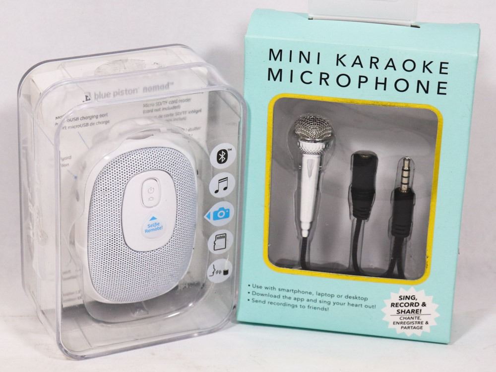 BLUETOOTH SPEAKER SHUTTER & REMOTE #LGX-11978 & MINI KARAOKE MICROPHONE. ELECTRONICS