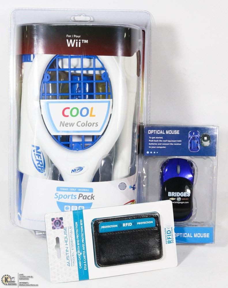 W/AUSTIN HOUSE CARDCASE WITH RFID PROTECTION & NERF SPORTS PACK FOR WII TENNIS, GOLF, BASEBALL