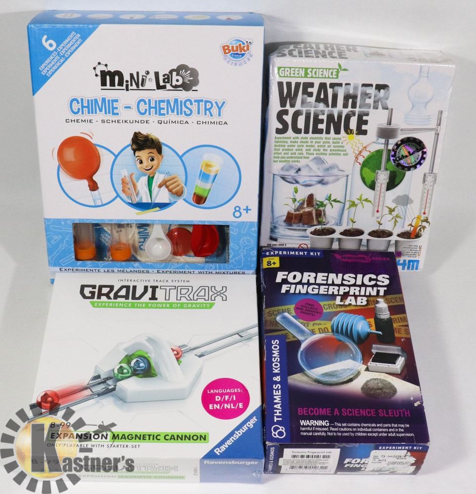 GRAVTRAX MAGNETIC CANNON, BAKI SCIENCE MINI LAB (FRANCE), KIDZLABS FORENSIC FINGER PRINT LAB (ALL 8 PLUS). KIDS