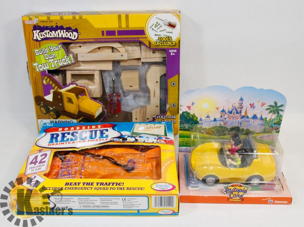DISNEYLAND CHEVRON, ROADSIDE RESCUE BRAINTEASER TRAFFIC JAM PUZZLE W/KUSTOMWOOD BUILD YOUR OWN TOW TRUCKS. KIDS