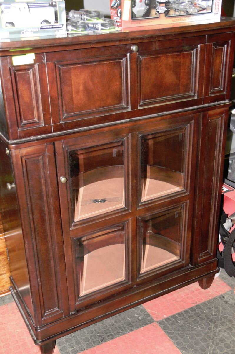 COMES WITH MIRRORED BACK, ROTATING STORAGE, SIDE DOOR STORAGE, ORIGINAL TAGS & KEY 39"X16"54"H
