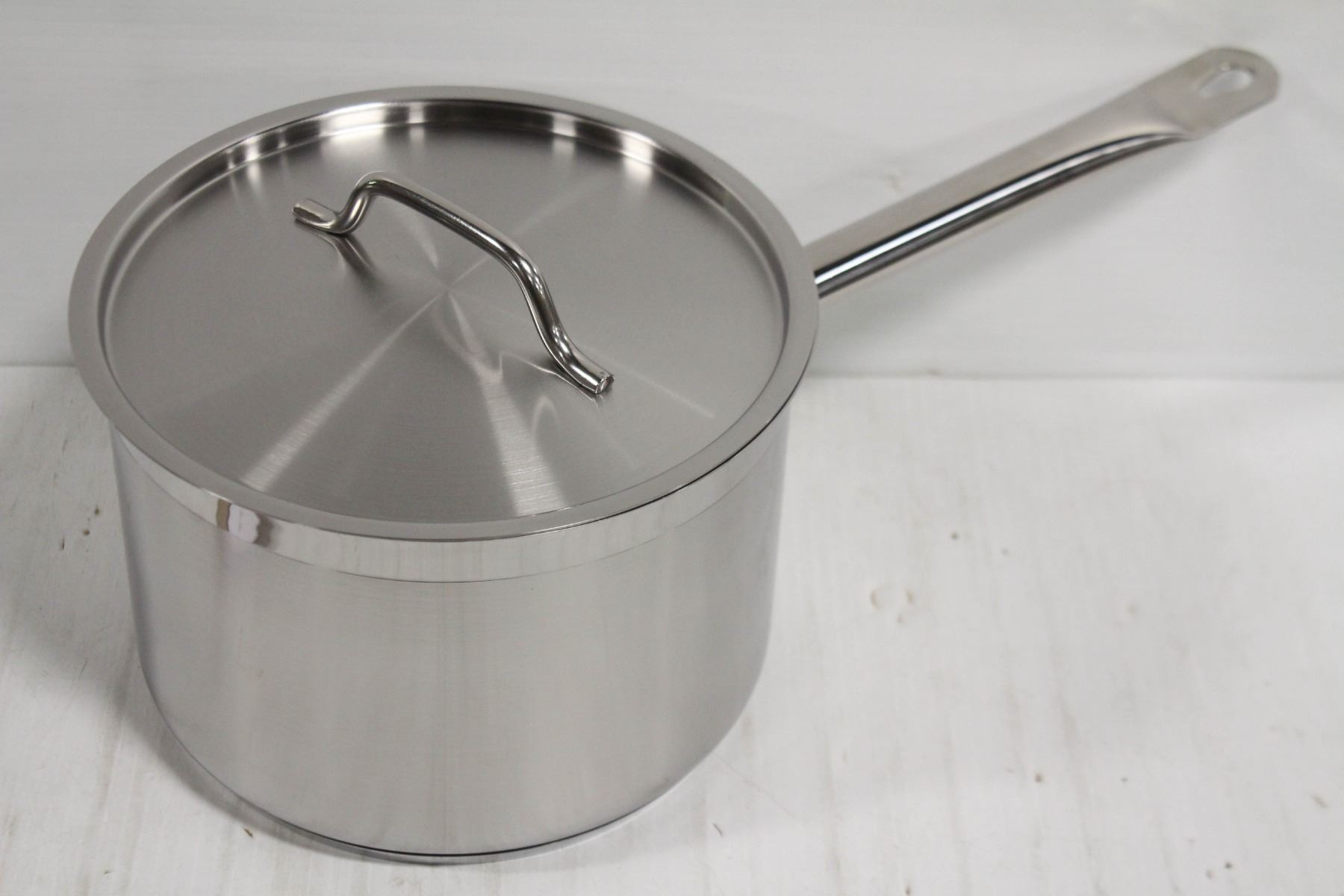 STAINLESS STEEL SAUCE PAN W/ LID. 0.8MM THICKNESS. 3 PLY BOTTOM. INDUCTION READY. JR 47642