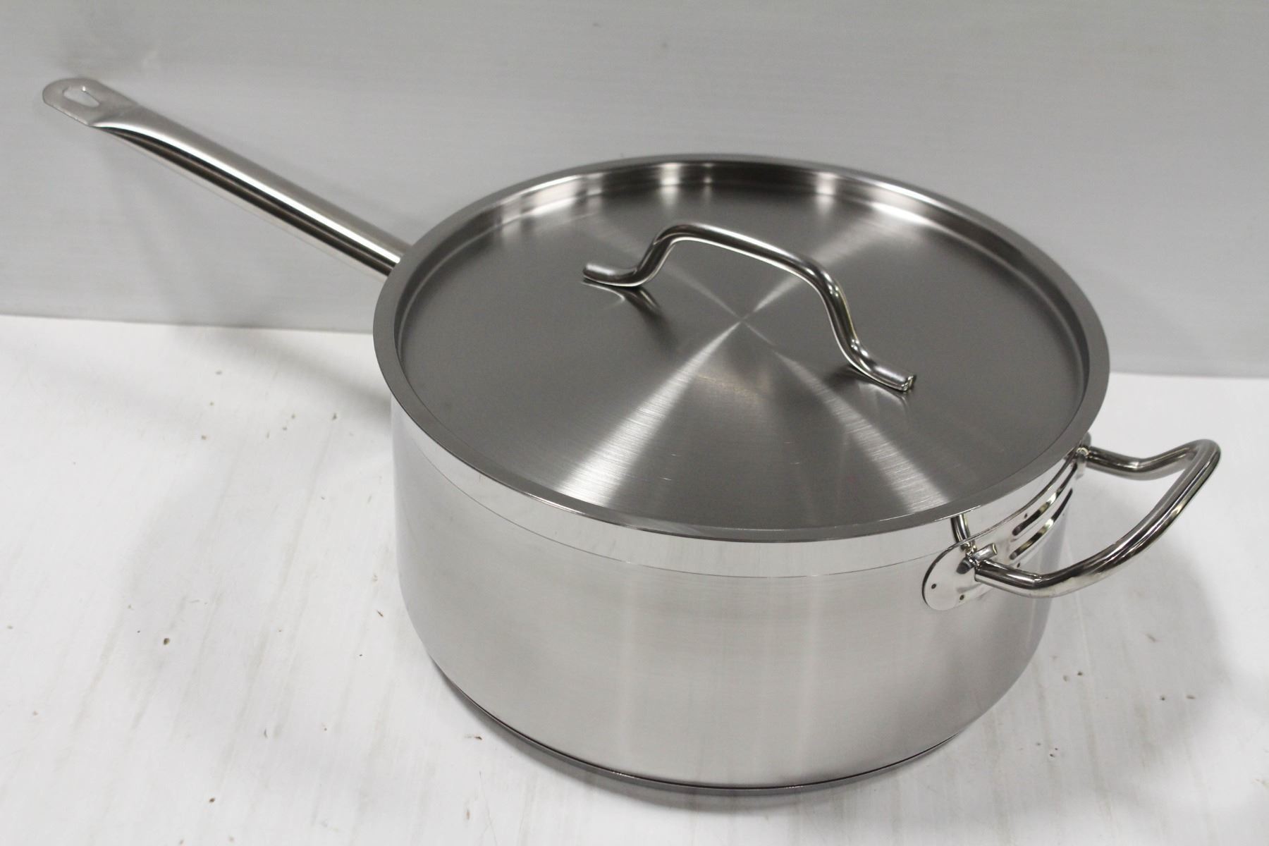 DUTY STAINLESS STEEL SAUCE PAN W/ LID. 0.8MM SIDE THICKNESS, 3 PLY BOTTOM. INDUCTION READY. JR 47682