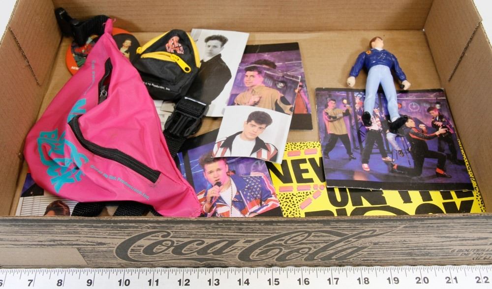 NEW KIDS ON THE BLOCK ACTION FIGURE , FANNY PACK , BACKPACK , PIN BUTTON ETC COLLECTIBLES