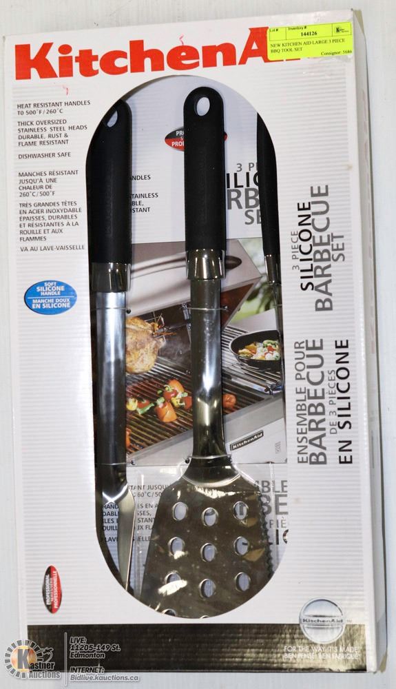 NEW KITCHEN AID LARGE 3 PIECE BBQ TOOL SET
