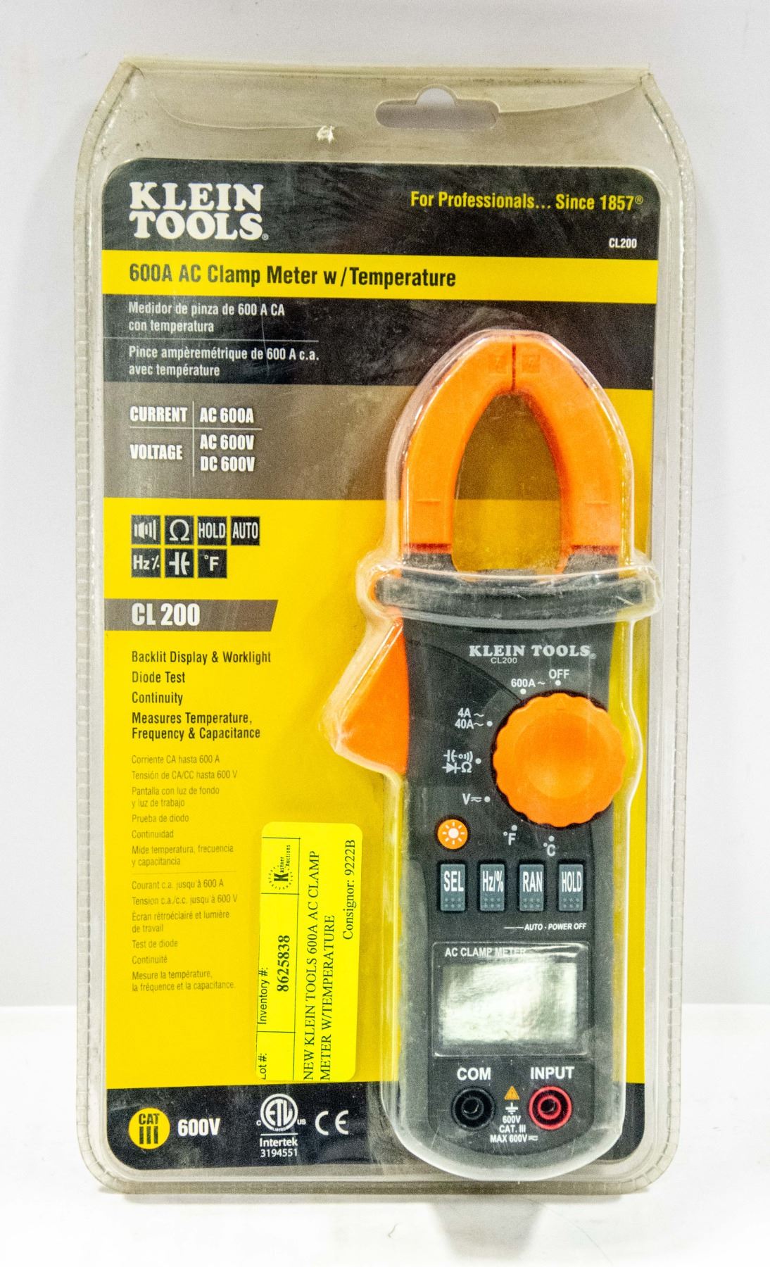 NEW KLEIN TOOLS 600A AC CLAMP METER W/TEMPERATURE