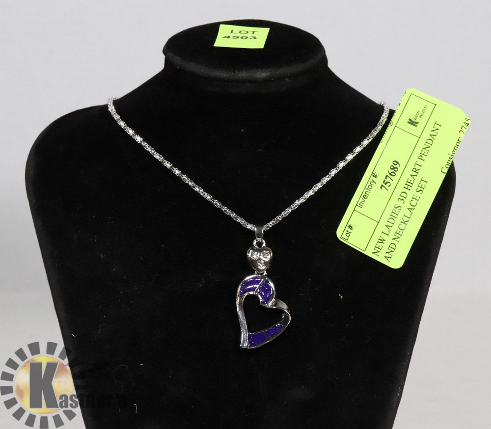 NEW LADIES 3D HEART PENDANT AND NECKLACE SET