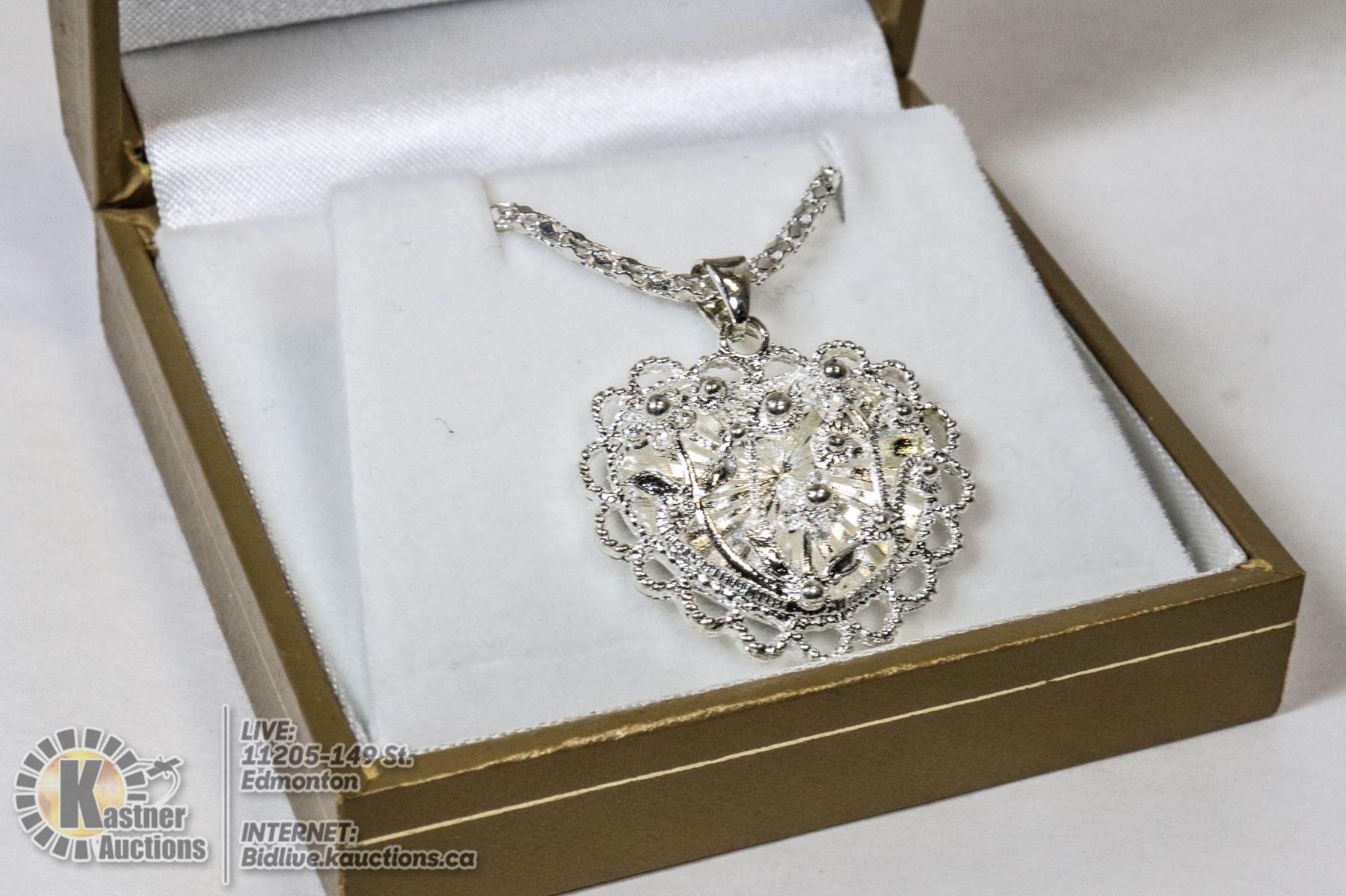 NEW LADIES 3D HEART SILVER TONE PENDANT NECKLACE
