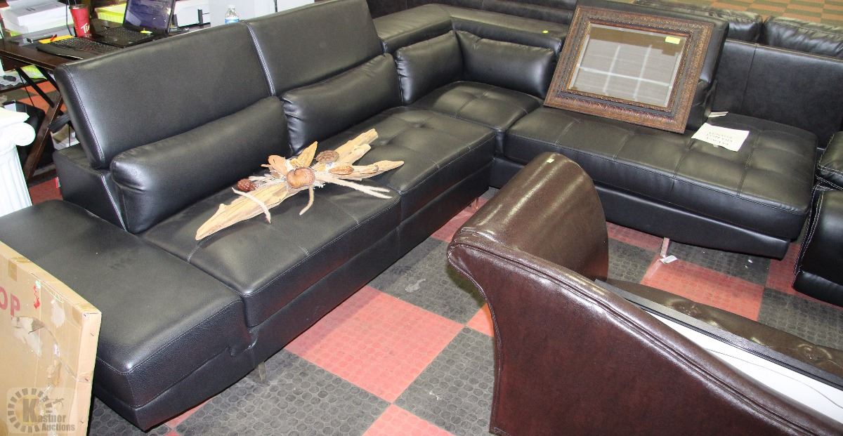 NEW LARGE BLACK LEATHERETTE LIFT BACK SECTIONAL