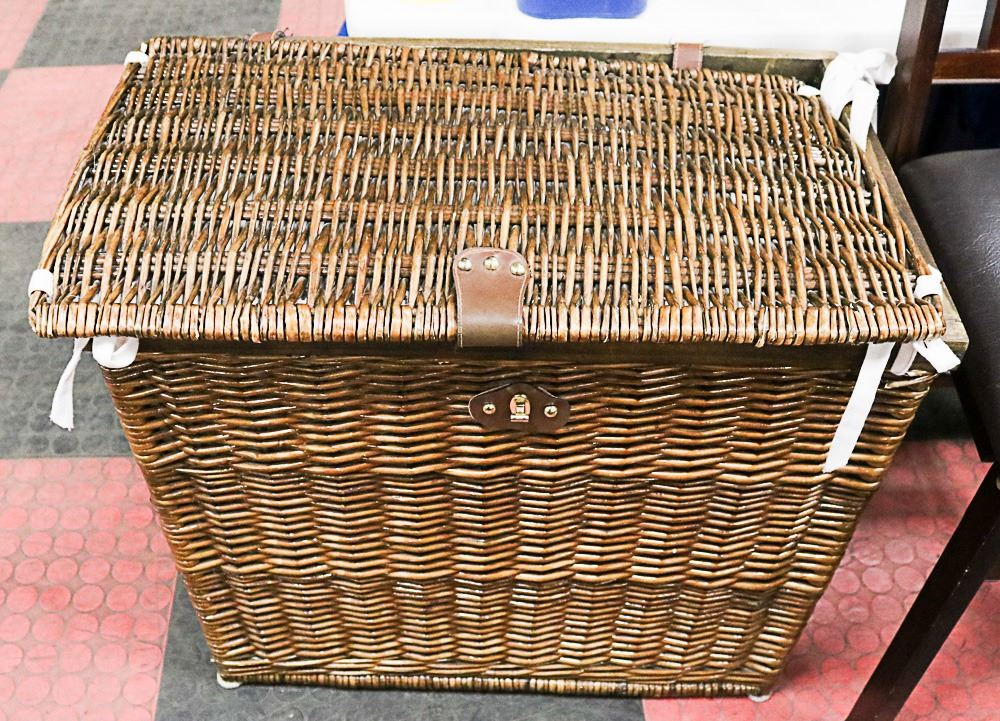 NEW LARGE LINEN LINED WICKER CHEST, LEATHER STRAPS