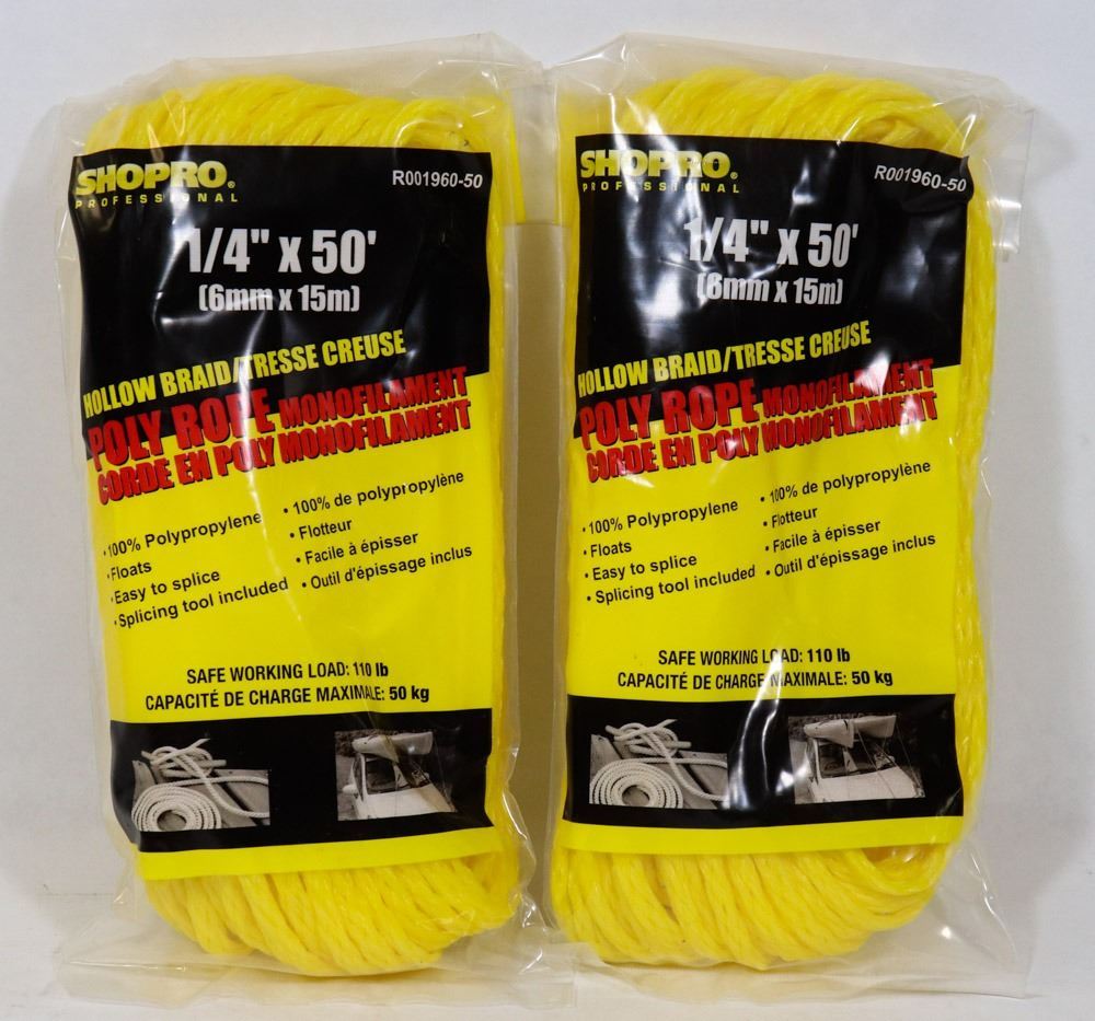 NEW! LOT OF 2 HOLLOW BRAID POLY ROPE ¼  x 50'