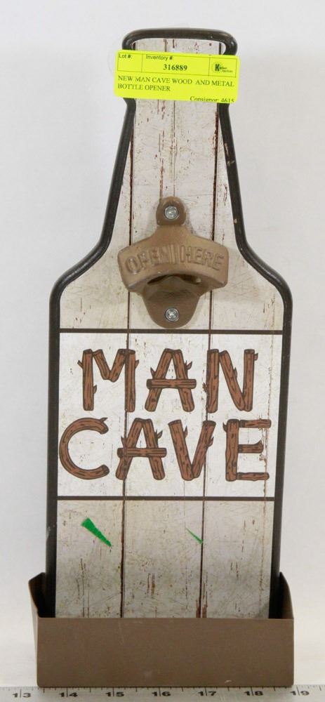 NEW MAN CAVE WOOD  AND METAL BOTTLE OPENER