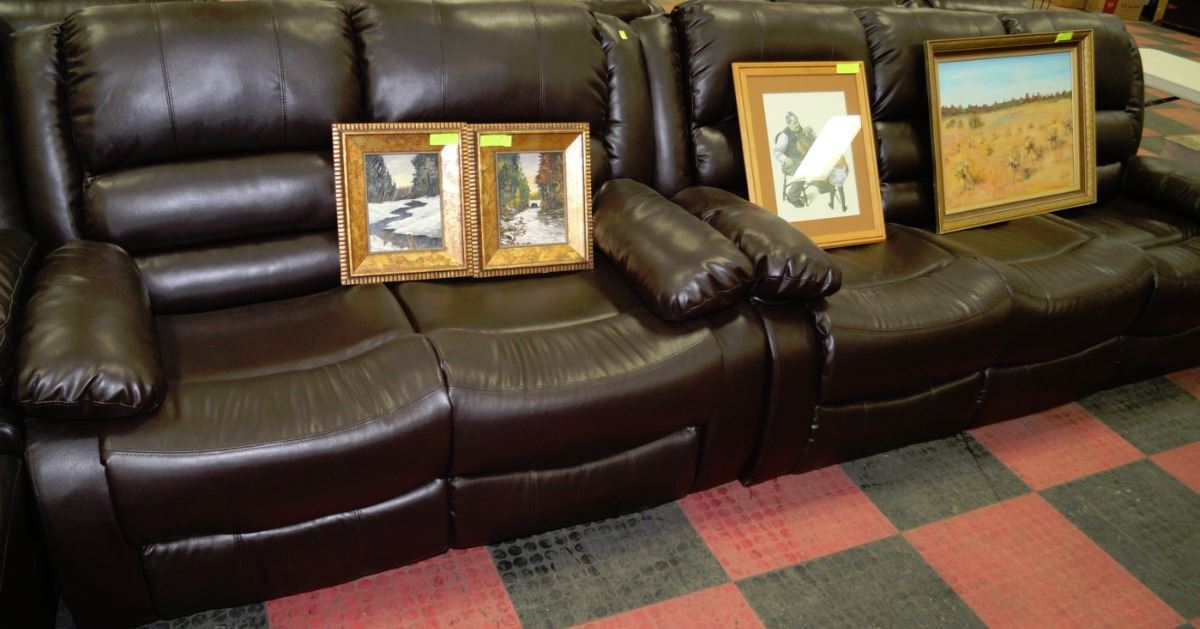 NEW (MARTIN) BROWN LEATHER RECLINING SOFA AND