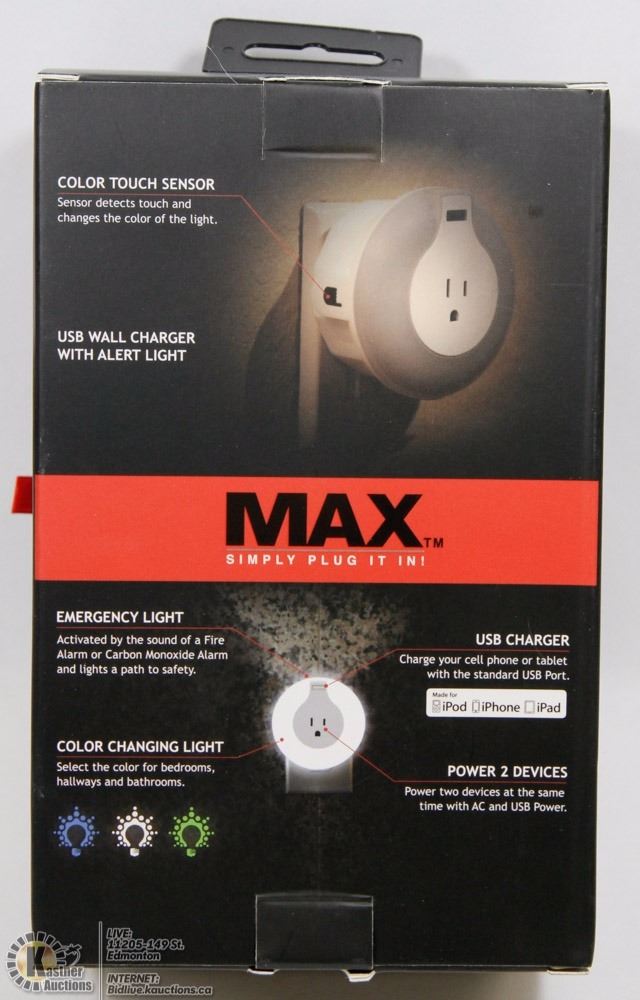 EMERGENCY LIGHT, USB CHARGER, COLOR CHANGING LIGHT AND POWER 2 DEVICES.