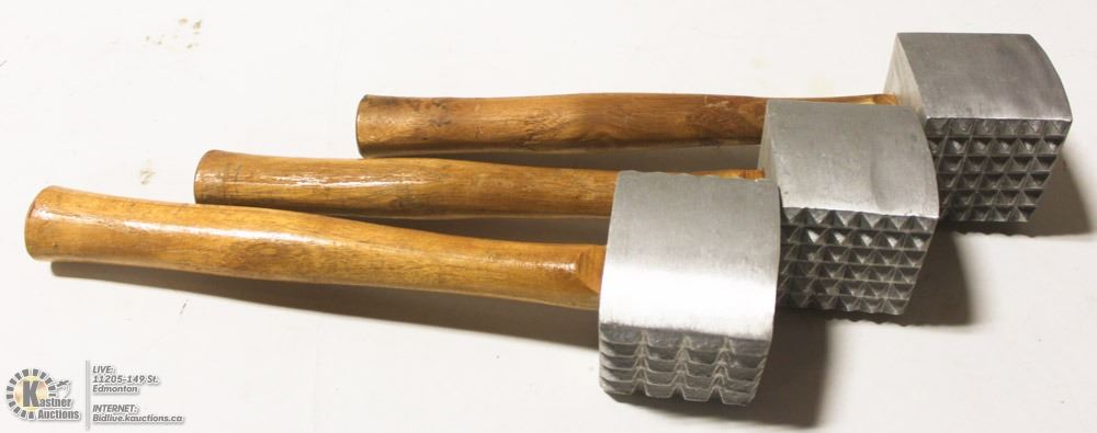 MEAT MALLET TENDERIZERS - LOT OF 3 - ALUMINUM - AS THEY COME IN CATALOGUE ORDER