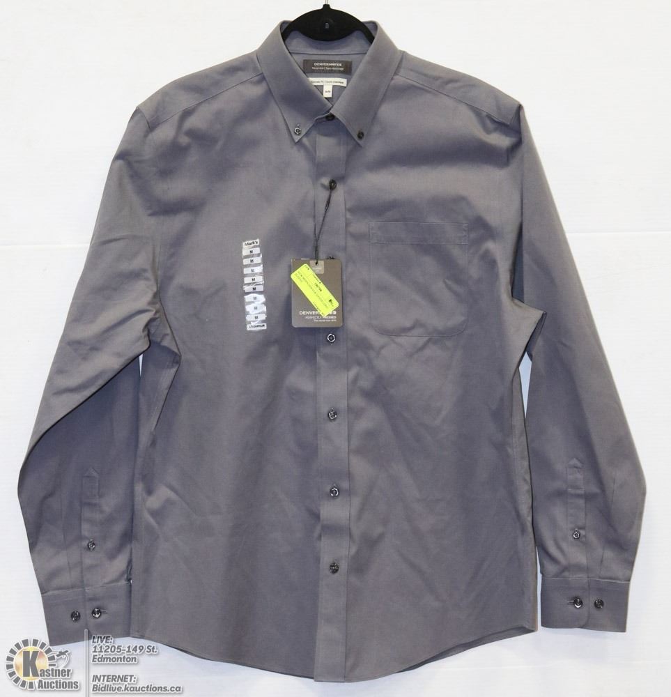 CLASSIC FIT, NEVER IRON SHIRT, SIZE M - GREY (TICKET PRICE $59.99) - CLOTHING