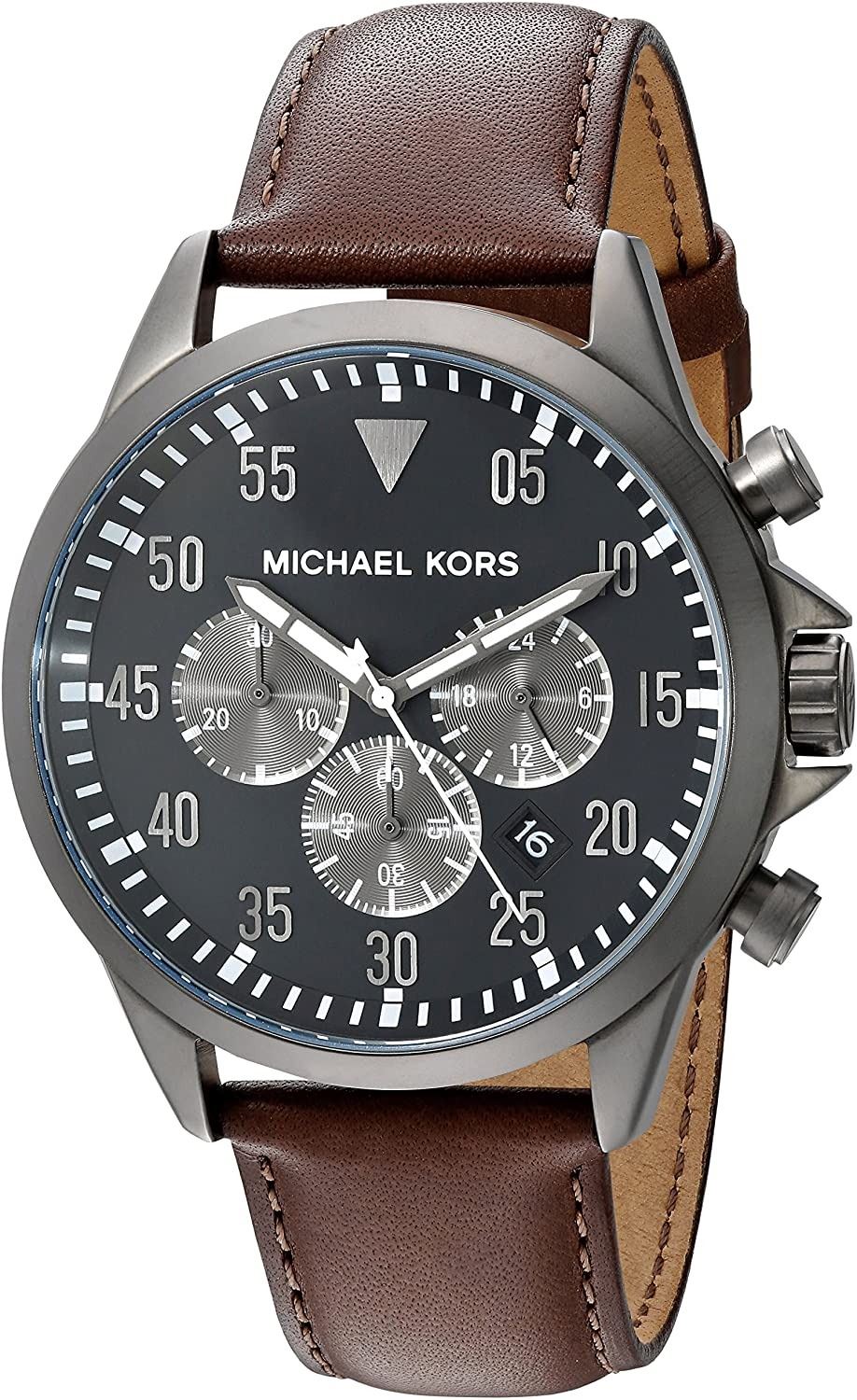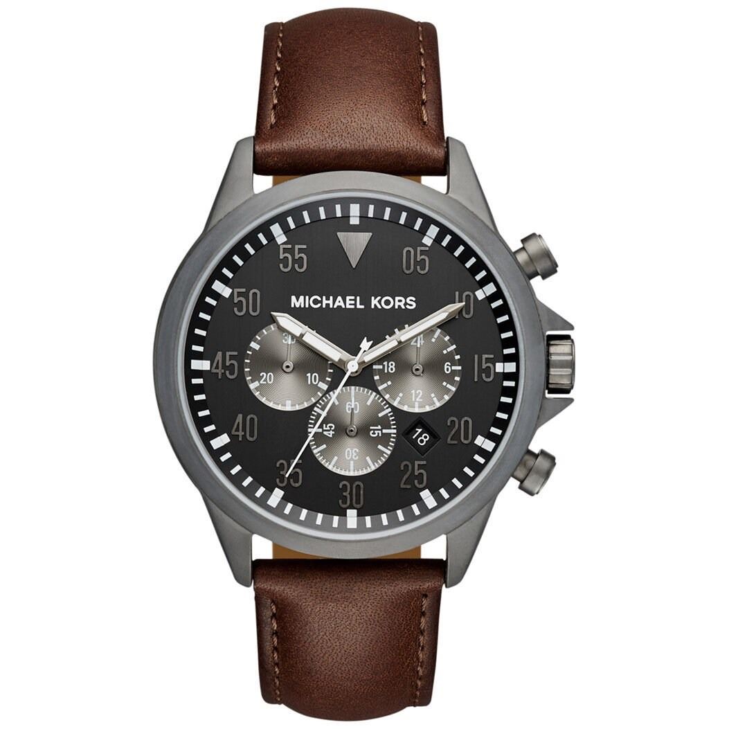 ST. STEEL BEZEL/BROWN LEATHER STRAP WATCH. JEWELLERY