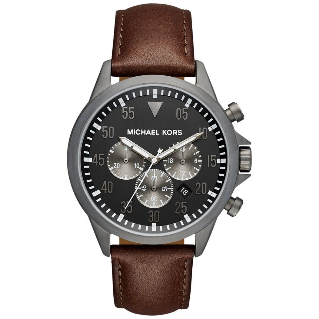 STAINLESS STEEL BEZEL/ BROWN LEATHER STRAP WATCH. JEWELRY
