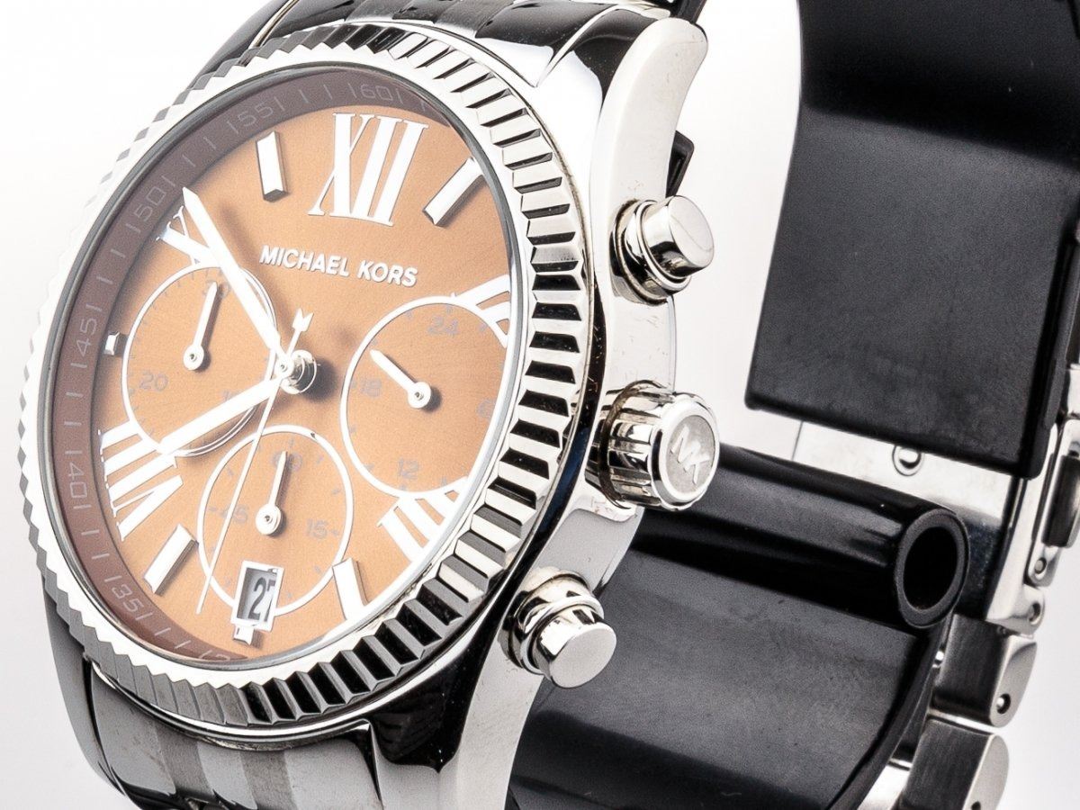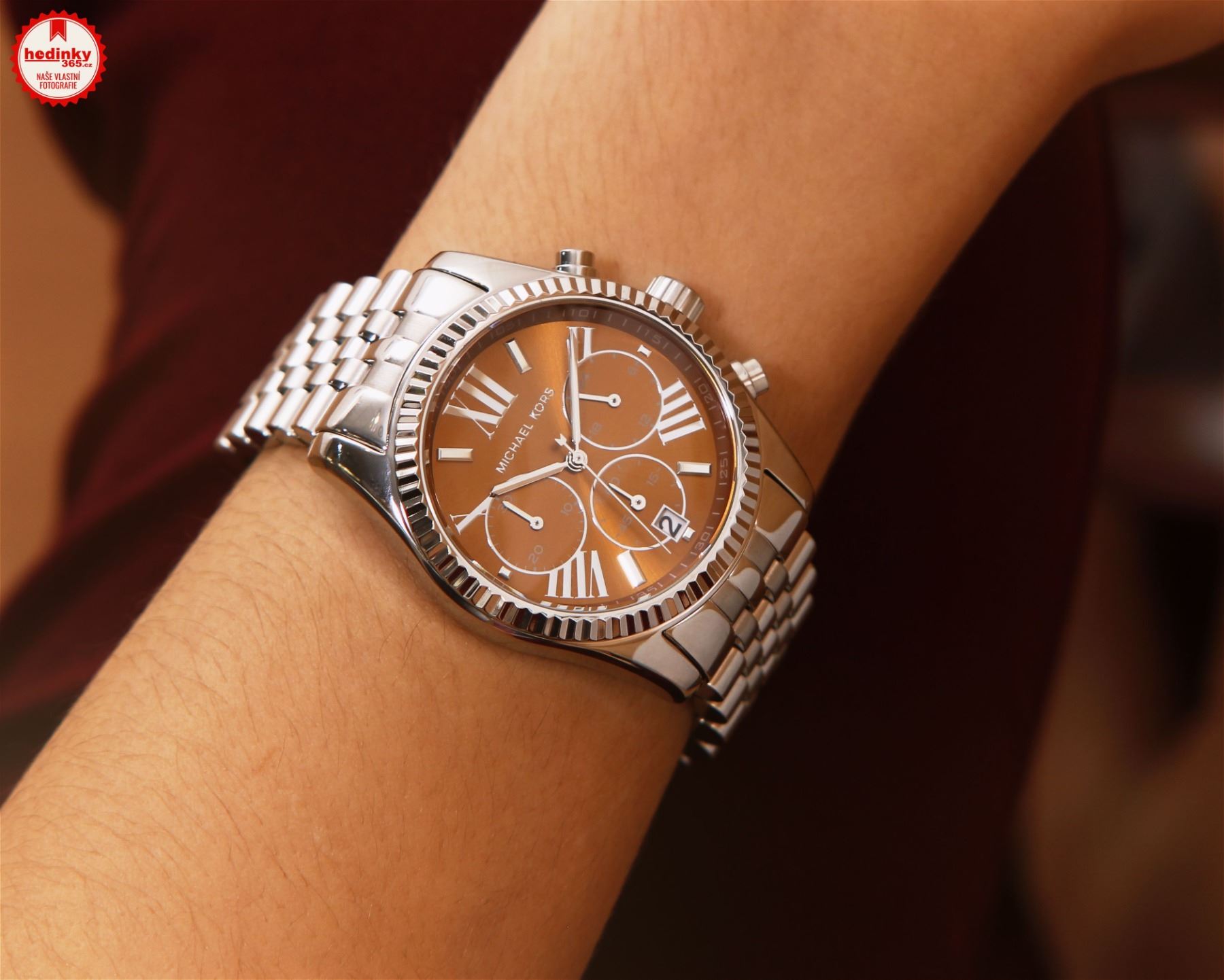 BROWN DIAL ST. STEEL BAND WATCH. JEWELLERY.