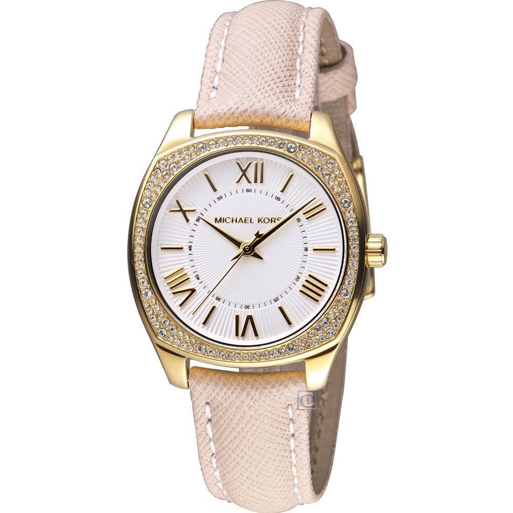 WITH PINKISH LEATHER STRAP. JEWELLERY.