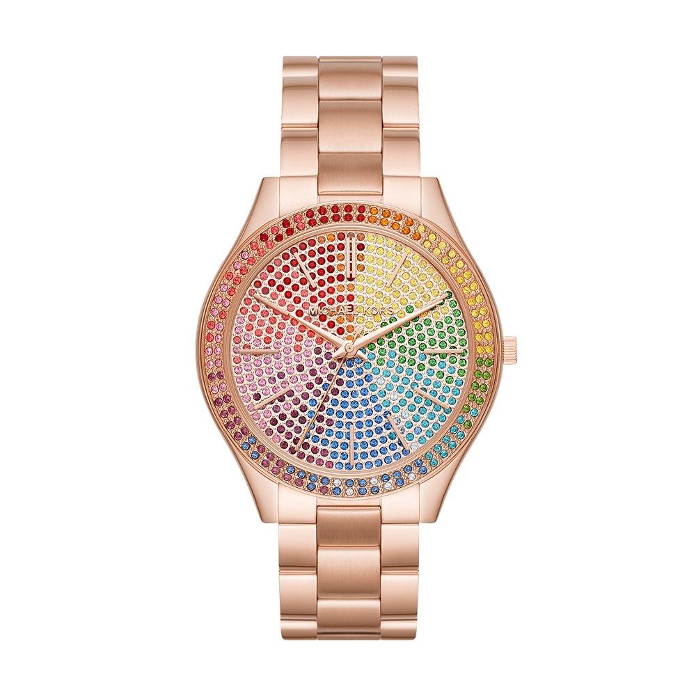 GOLD COLOR DIAL & BAND. DIAL / BEZEL STTUDDED WITH CRYSTALS. JEWELLERY.