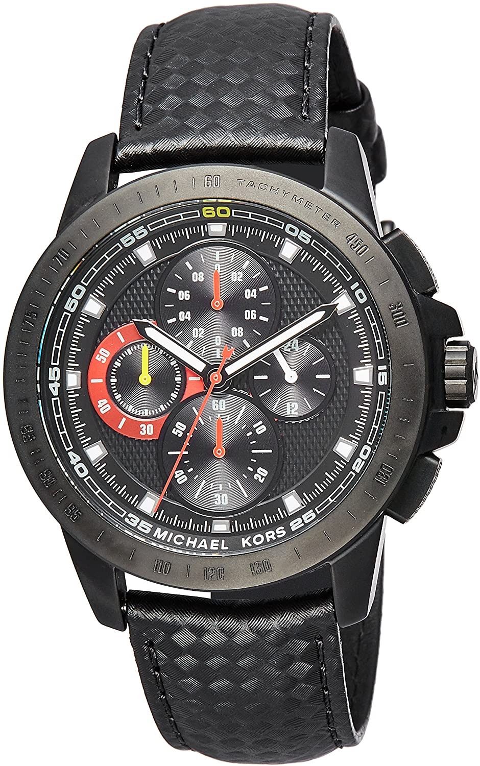 43MM WATCH W/TEXTURED LEATHER STRAP. JEWELRY.