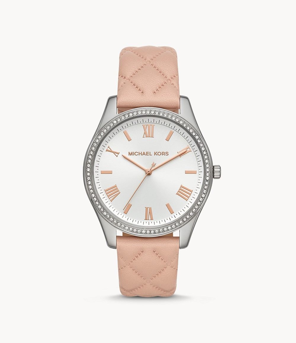PINK QUILTED LEATHER STRAP WATCH. JEWELLERY.