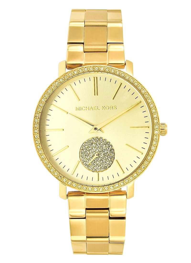 NEW MICHAEL KORS GOLD TONE CRYSTAL SUBDIAL MSRP516